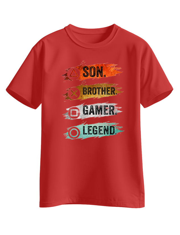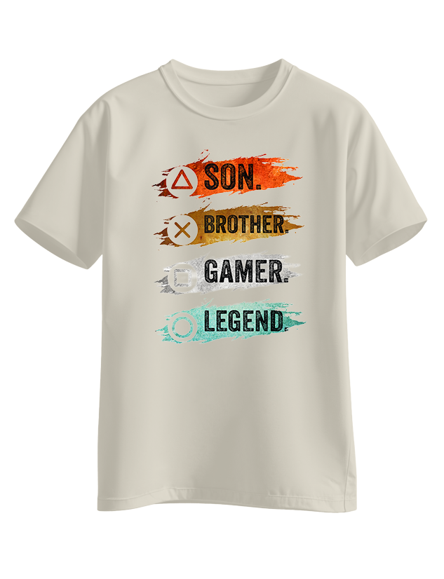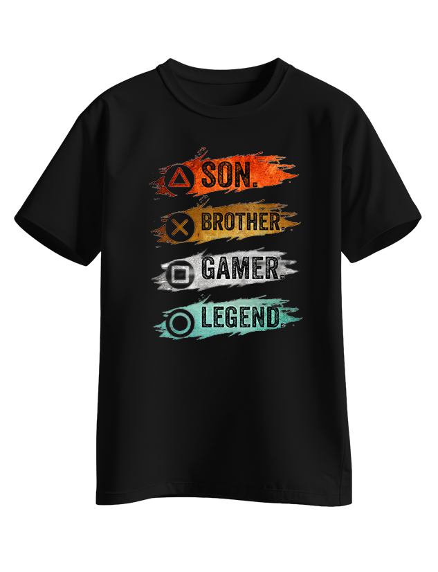 Bold gamer-style tee featuring Son. Brother. Gamer. Legend. A clean, powerful design made for everyday comfort and gamer pride.