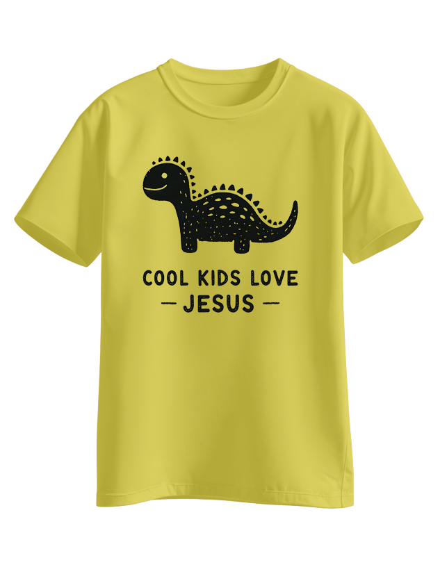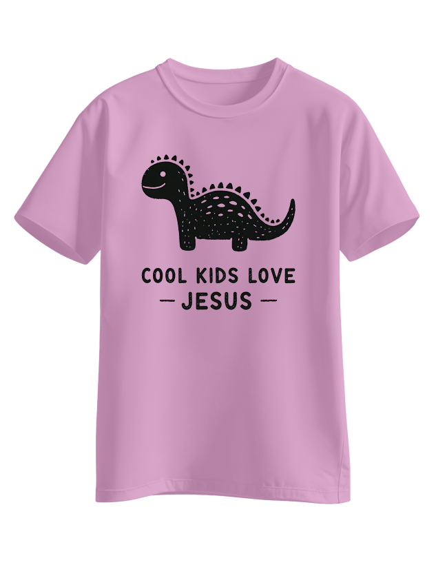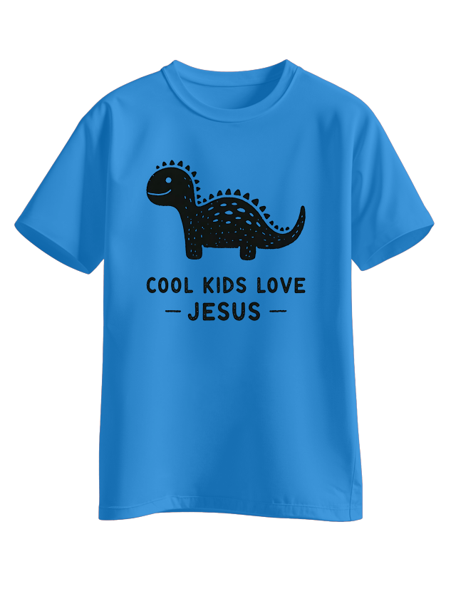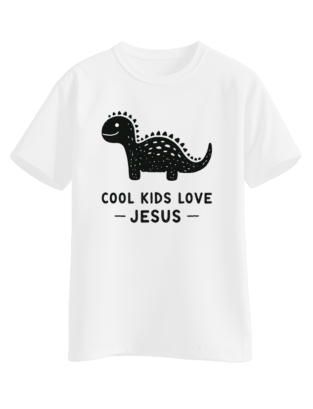 A playful dinosaur design that makes loving Jesus fun and kid-cool.