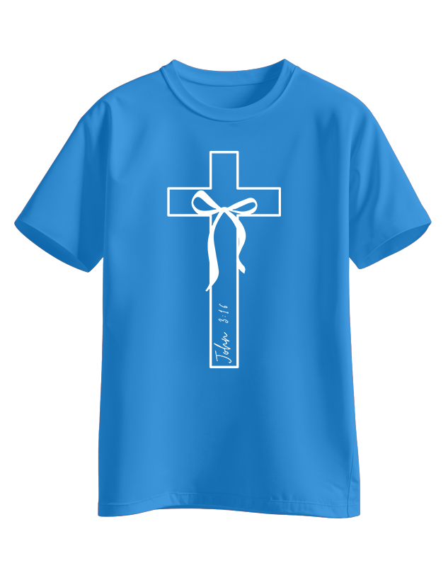 A soft and meaningful kids tee sharing God’s love through a gentle cross design.