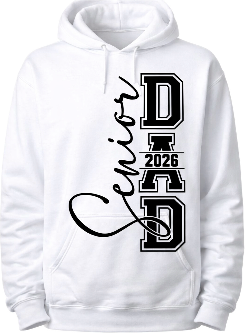Celebrate senior year in style with the Senior Dad 2026 Hoodie. Designed for proud fathers, this hoodie features bold varsity lettering with modern script for a clean. standout look. Made from soft, premium fabric, it’s perfect for games, school events and graduation season.