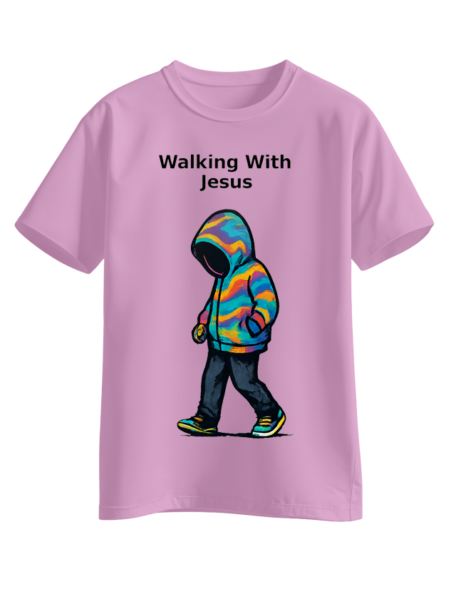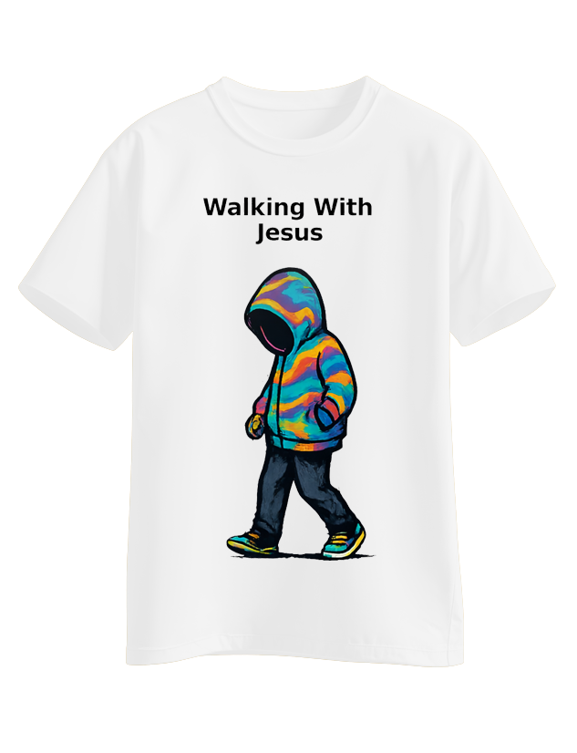 Faith is a daily journey. This design represents a child learning to walk step by step with Jesus.