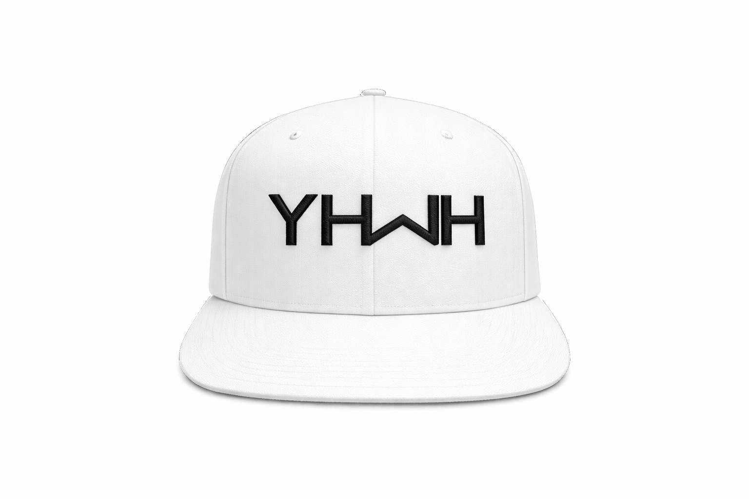 Clean white snapback featuring bold black “YHWH” embroidery, representing the sacred name of God with a modern, minimalist style. Perfect for everyday wear and faith-forward fashion.